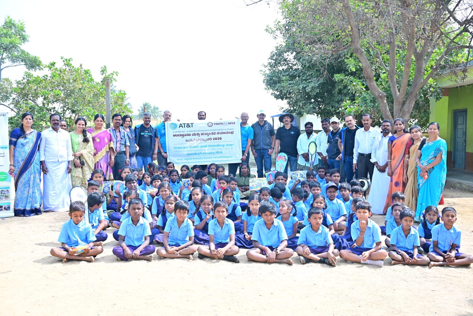 On 30 January 2026, Youth for Seva facilitated the handover of key educational and community-support infrastructure in these two villages, with generous support from AT&T. Hosadadaguru Government School was equipped with a Smart Class, Water Purifier, Sports Kit, and solar lighting for the sports ground.